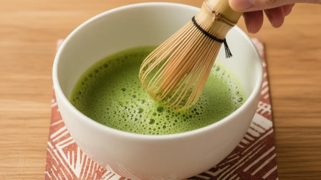 Whisk quickly in a zigzag motion until the matcha is frothy and no lumps remain.